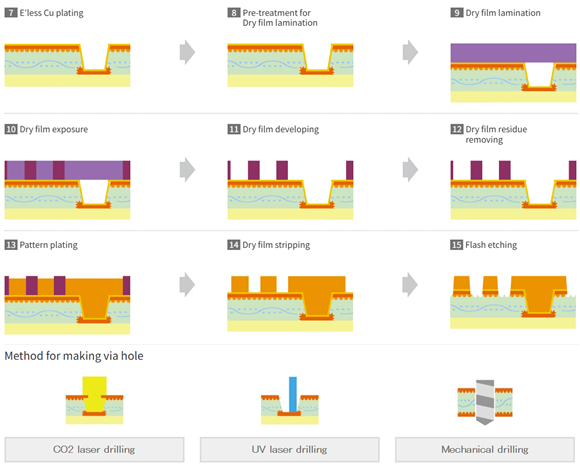 Modified Semi-Additive Process for ultra-fine line circuits with superior precision.