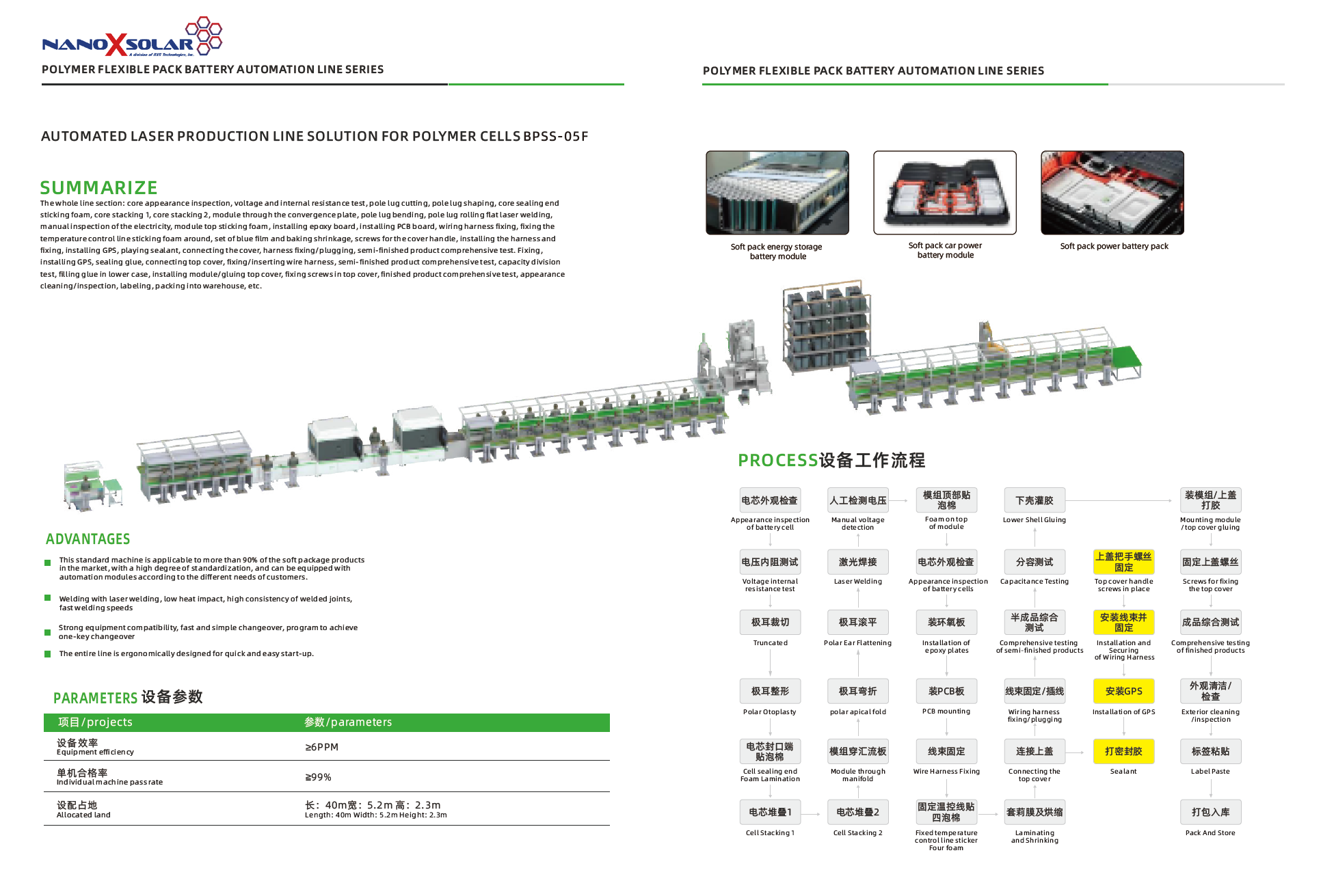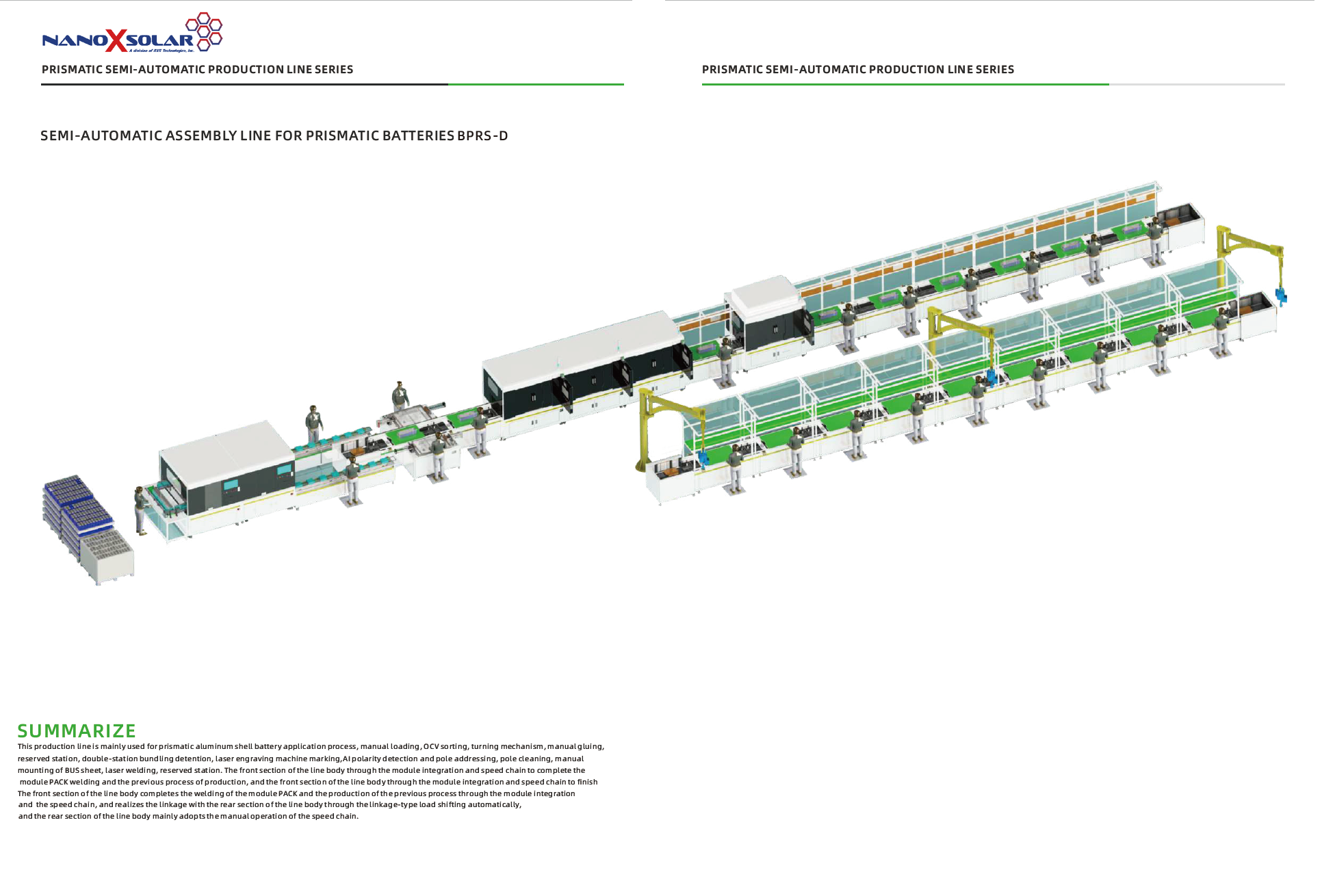 Complete battery assembly production lines featuring semi-automated and fully automated systems for prismatic cells, pack assembly, and polymer cell manufacturing. Tier-1 equipment designed for high-volume production.