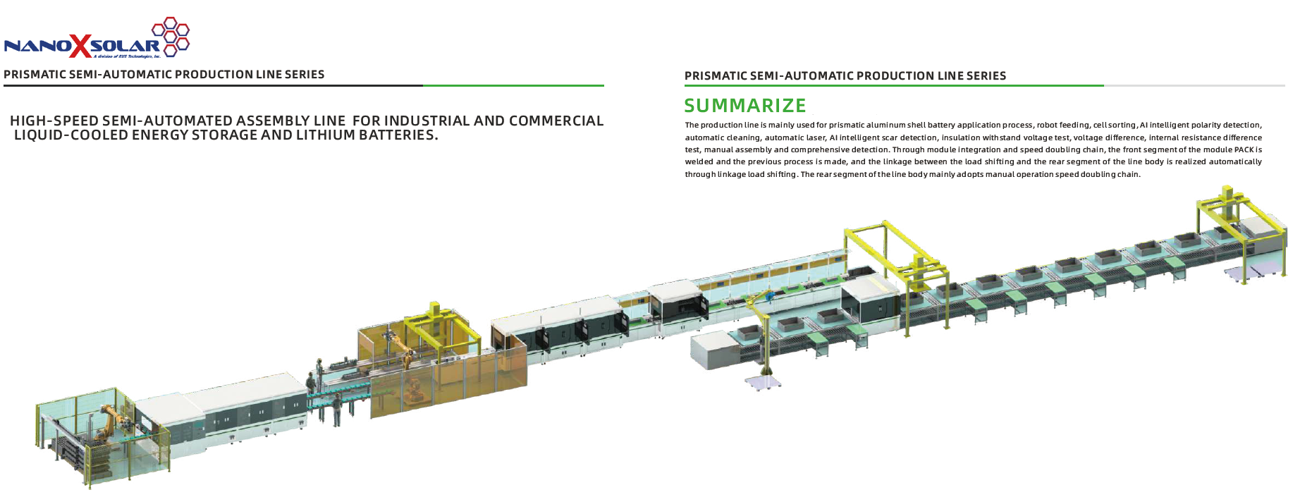 Complete battery assembly production lines featuring semi-automated and fully automated systems for prismatic cells, pack assembly, and polymer cell manufacturing. Tier-1 equipment designed for high-volume production.