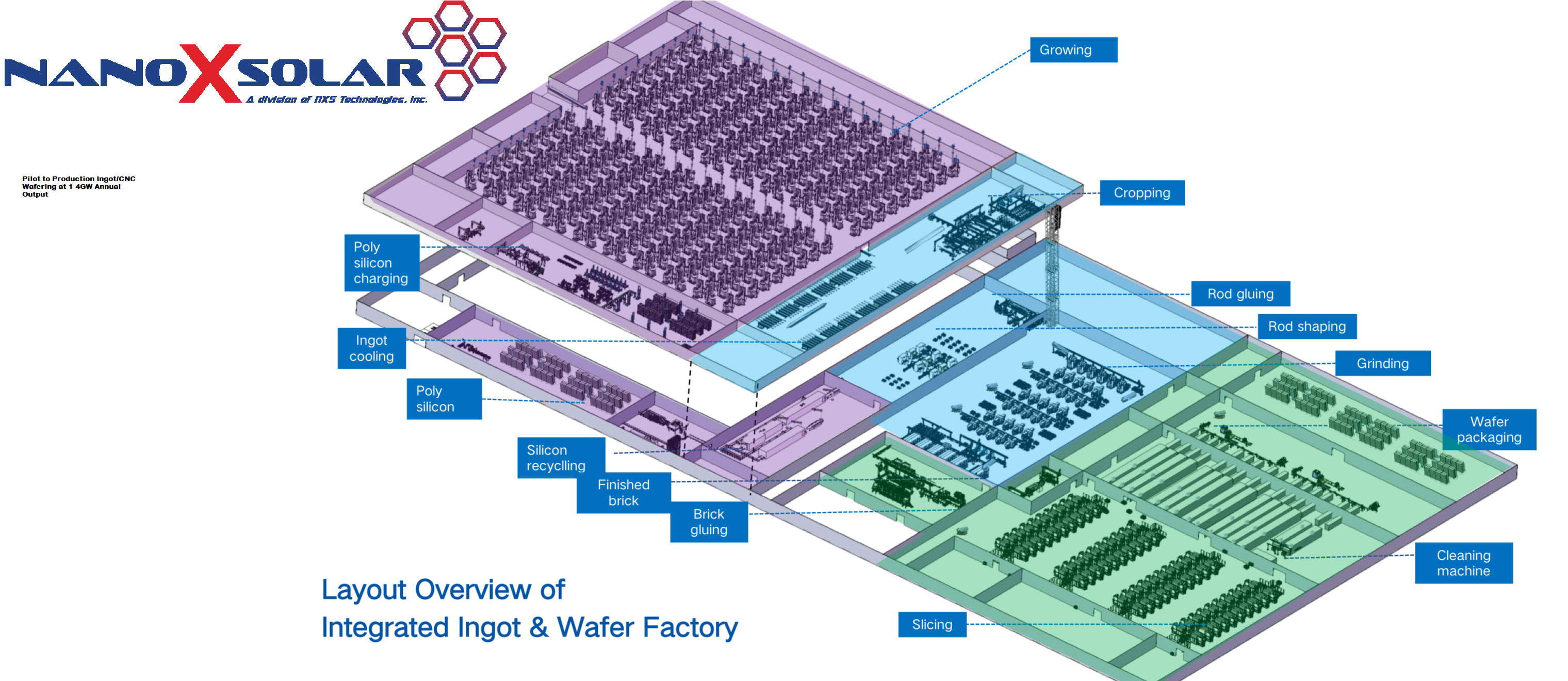 Full-scale production line from Tier-1 PV tooling companies, OEM designed by NXS for custom ingot growth and battery cell manufacturing.
